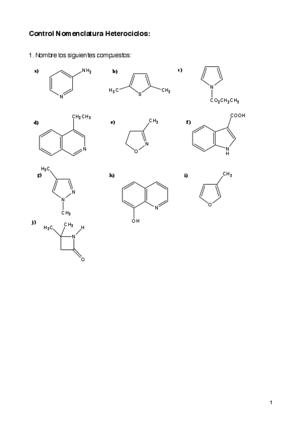 He publicado nuevos ejercicios de 1º Química Orgánica II: Control Nomenclatura de Heterociclos.pdf