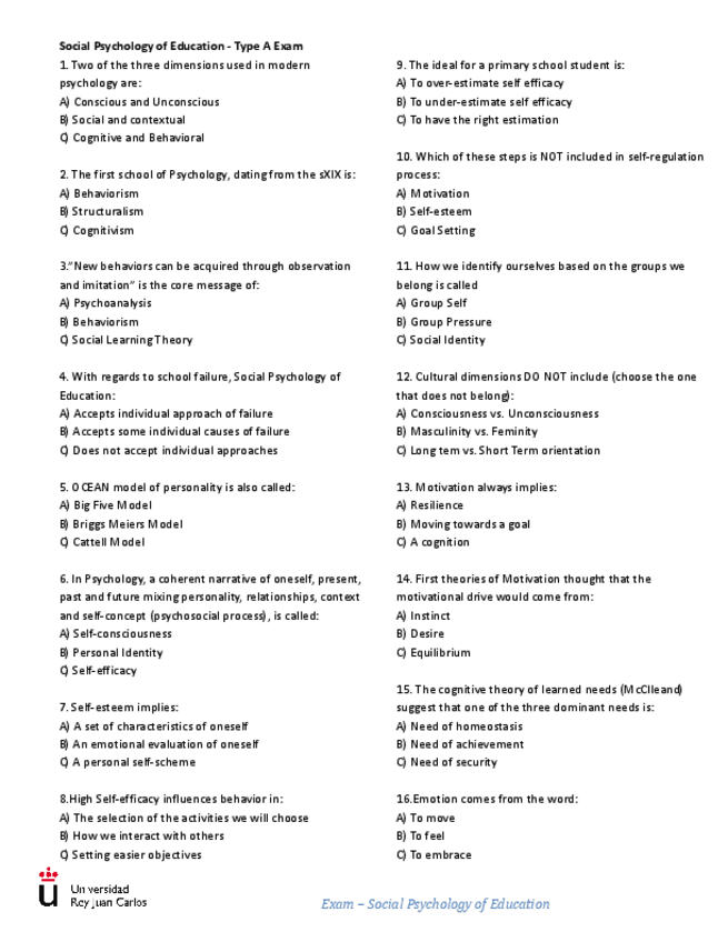 MODELOS DE EXAMEN SOCIAL PSYCHOLOGY OF EDUCATION
