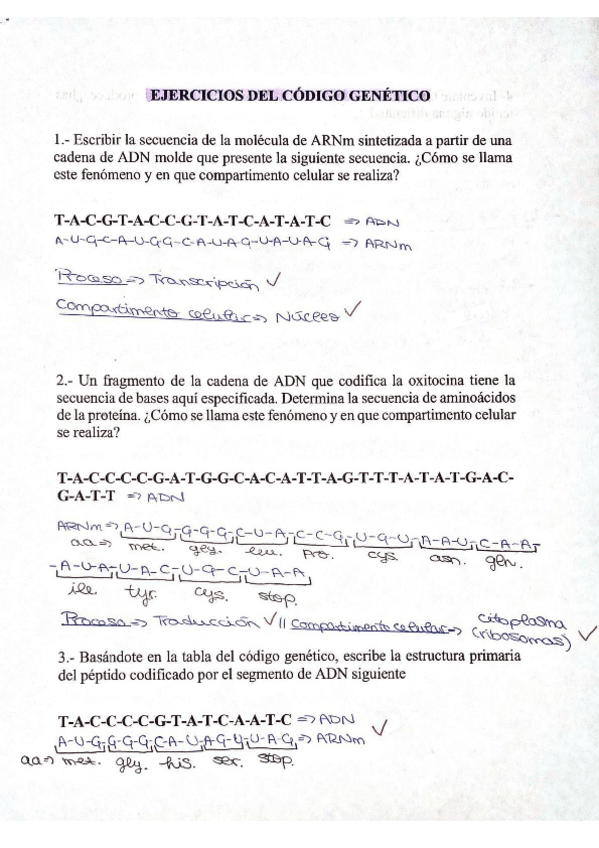 He publicado nuevos ejercicios de 1º Fundamentos de Ciencias de la Vida: Ejercicios Código Genético Corregidos | Biología.pdf