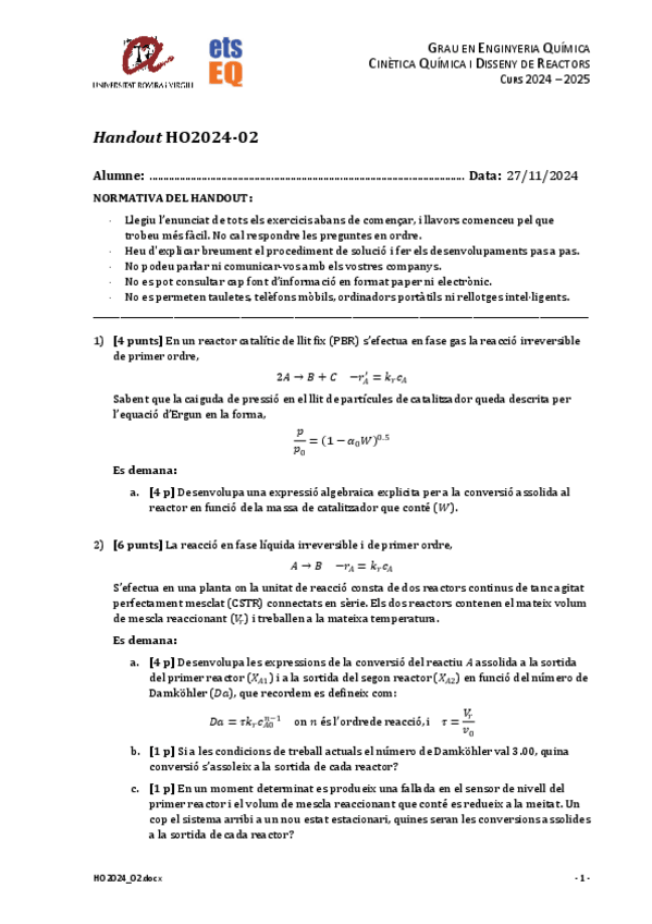 He publicado nuevos apuntes de 2º Cinètica Química i Disseny de Reactors: HO202401-solucio.pdf