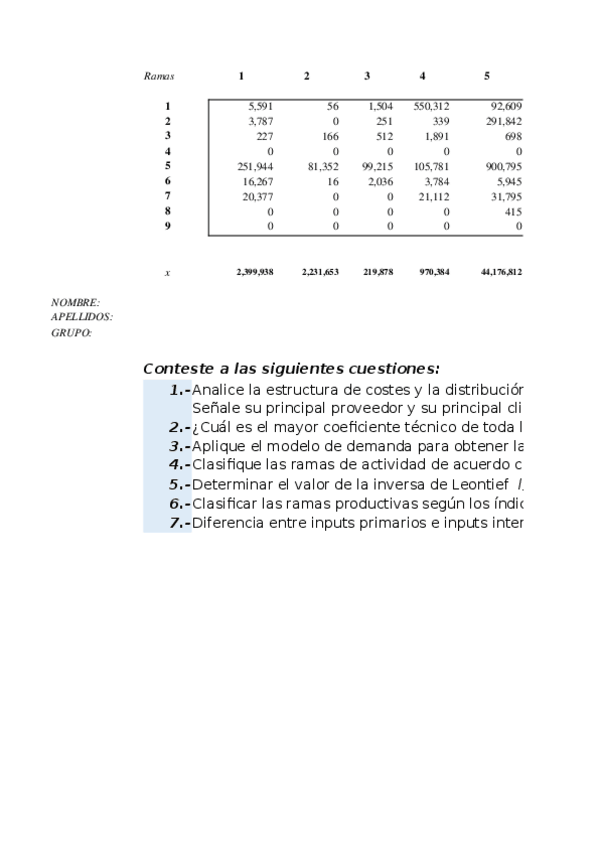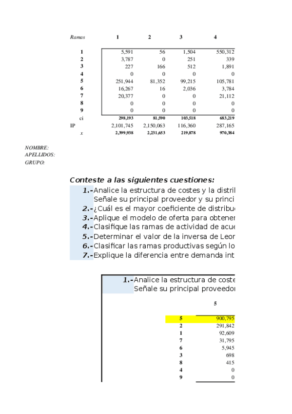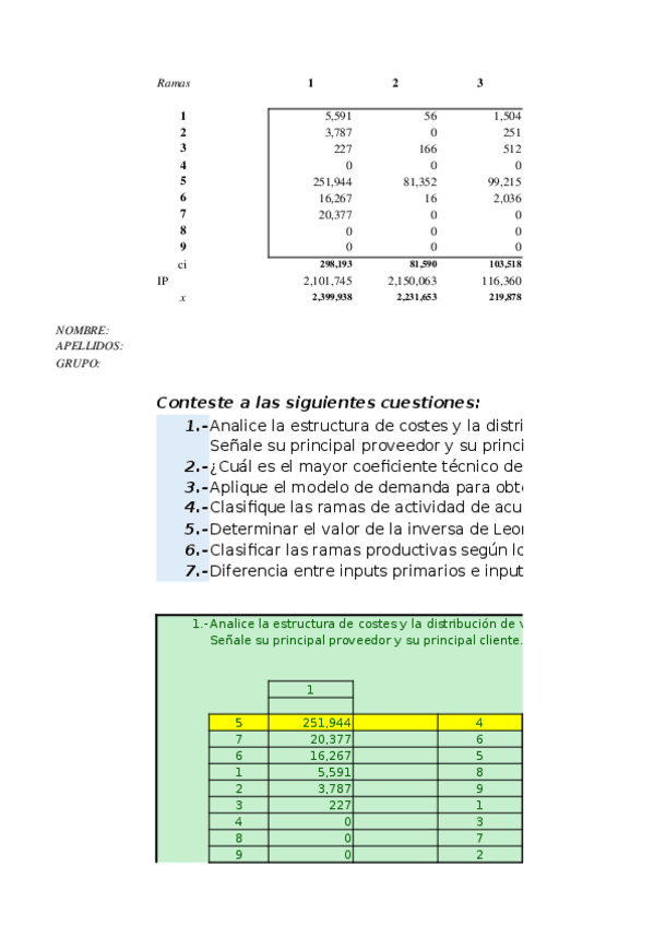 He publicado nuevos ejercicios de 2º indicadores económicos del turismo: Ejercicios matriz con sus soluciones