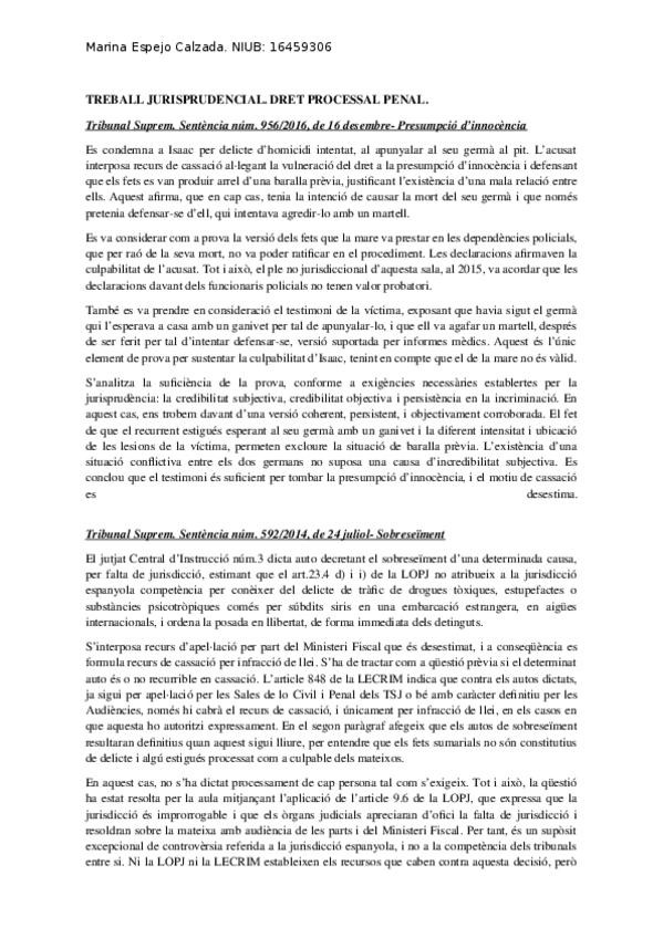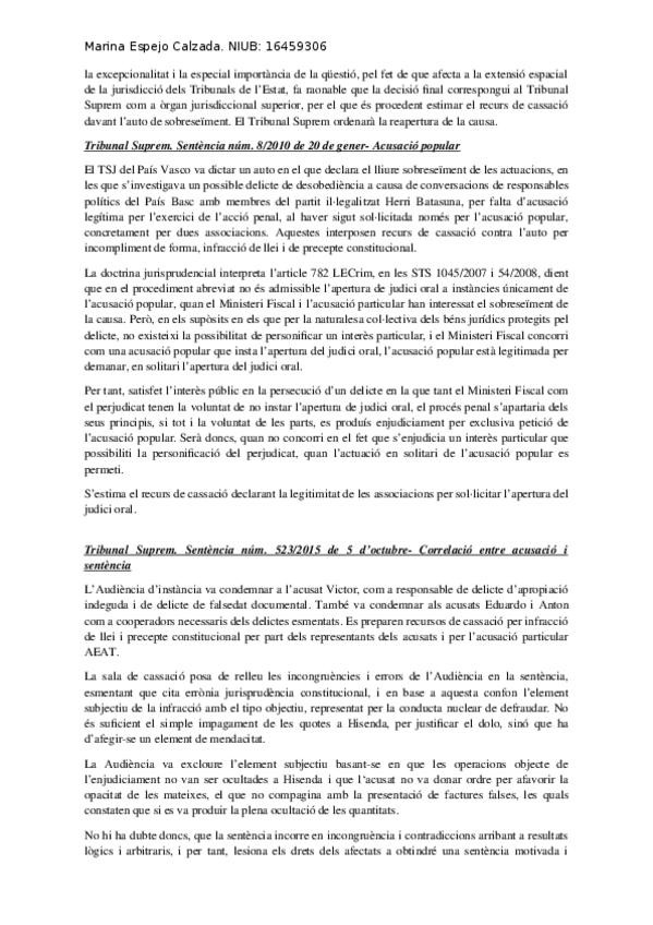 Resum de sentències relevants sobre presumpció inocencia, sobreseïment, acusació popular, etc.