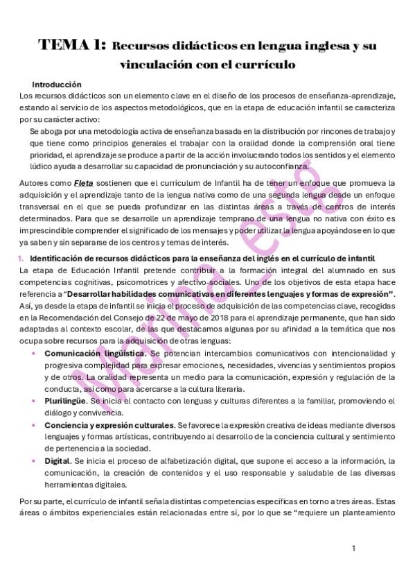 He publicado nuevos apuntes de 3º Recursos para la Enseñanza del Inglés en Educación Infantil: Tema-1.pdf