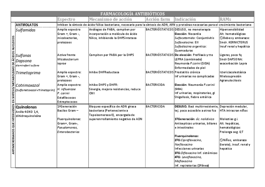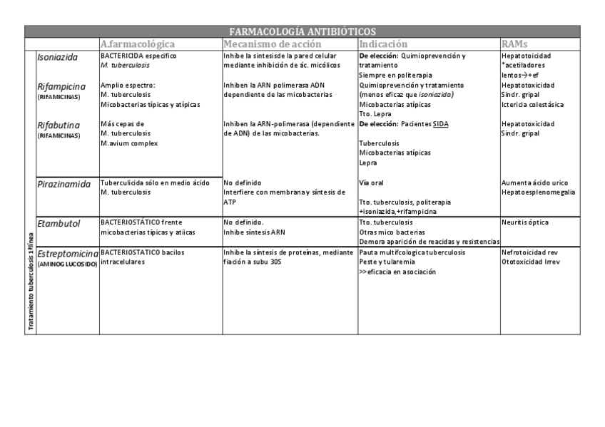 Tablas Resumen. Antibióticos, Antifúngicos, Tuberculosis y Lepra