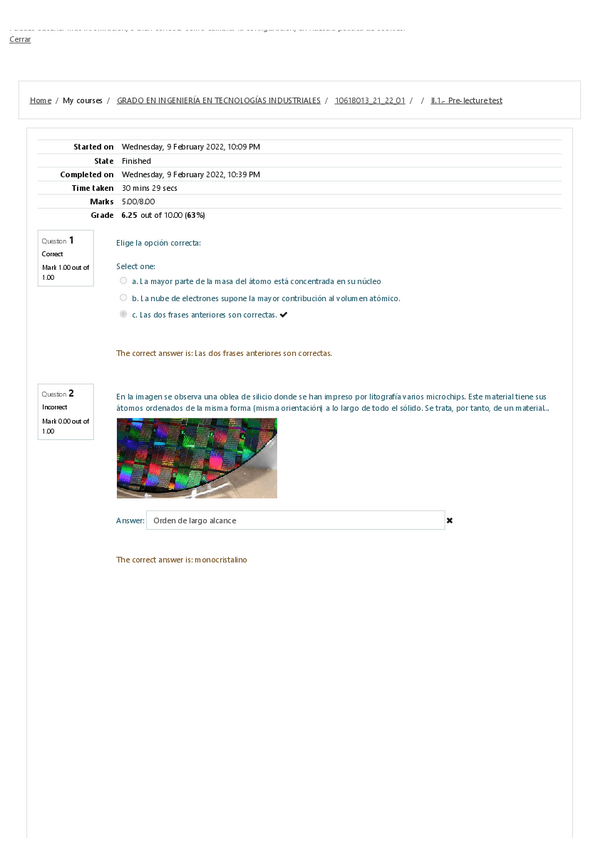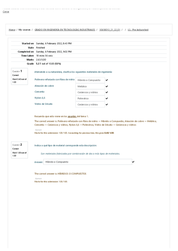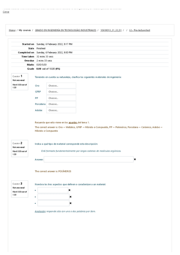 He publicado nuevos ejercicios de 1º Ciencia e Ingeniería de los Materiales: Pre-Lecture Test