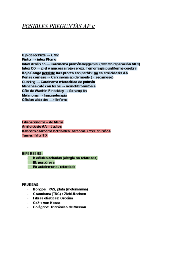 Posibles preguntas con explicación y asociaciones importantes