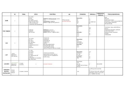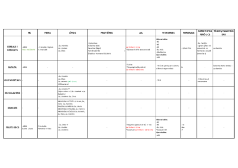 quadres composició bioquimica aliments