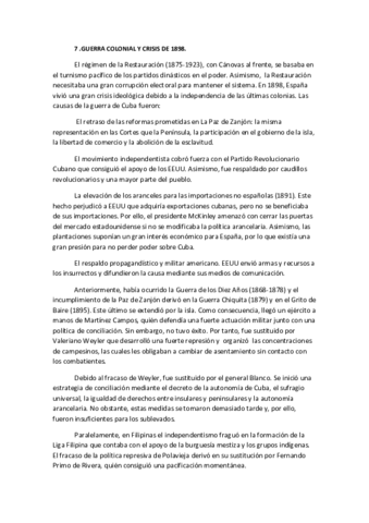 He publicado nuevos apuntes de Historia de España: 7. Guerra colonial y crisis de 1898..pdf