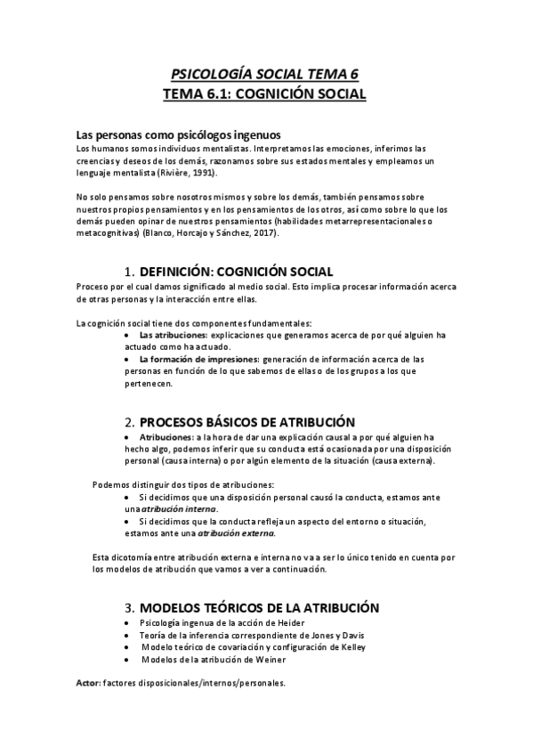 Apuntes tema 6.1 psicología social ucjc cognición social I primera parte
