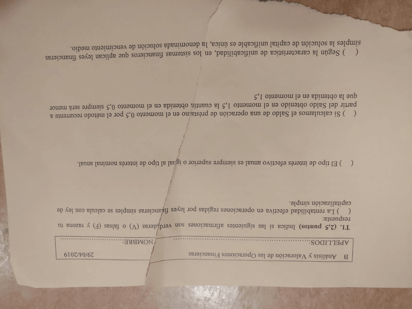 He publicado nuevos examenes de 2º Análisis y valoración de las operaciones financieras: Examen - Primer parcial AVOF (2019)