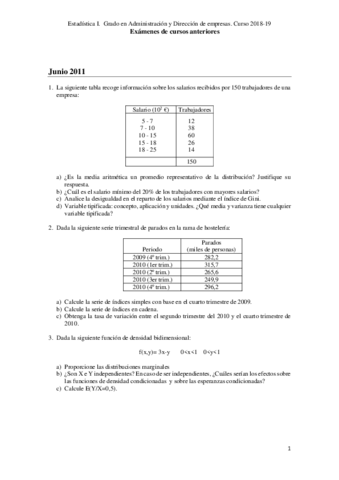He publicado nuevos apuntes de 1º Estadística I: 2018-2019 - Exámenes de cursos anteriores.pdf
