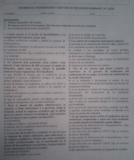 He publicado nuevos examenes de 3º Organización y Gestión de los Recursos Humanos: Tipos examenes 2