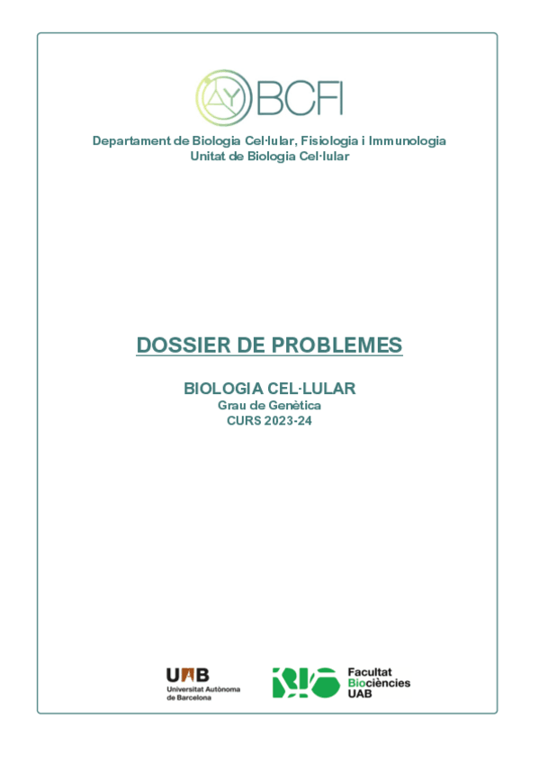 Problemes resolts del 1r i 2n parcial de Biologia Cel·lular