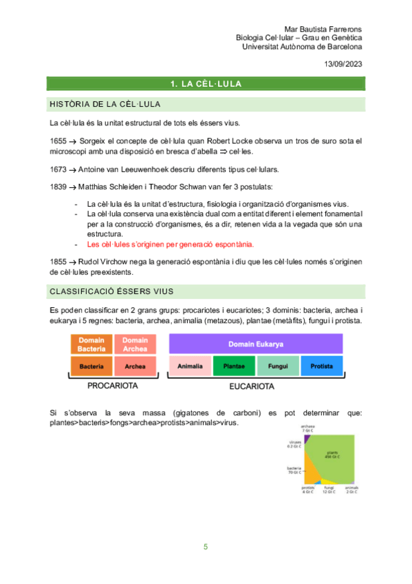 Apunts del 1r i 2n parcial de Biologia Cel·lular