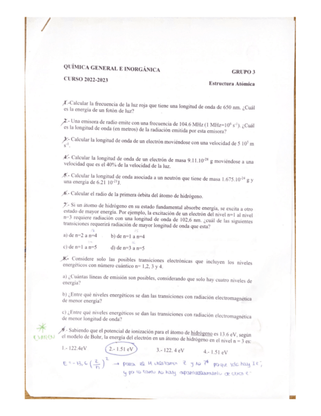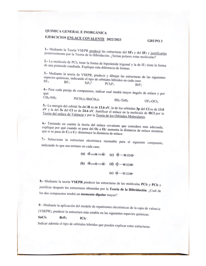 He publicado nuevos apuntes de 1º Química General e Inorgánica: Ejercicios examen