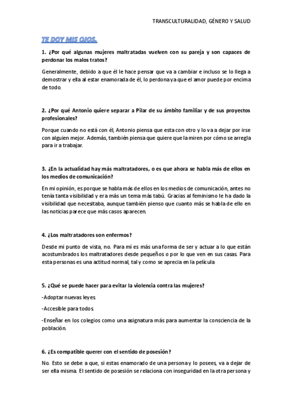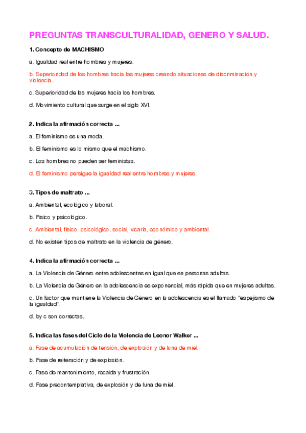 He publicado nuevos ejercicios de 2º Transculturalidad, Genero y Salud: Trabajos