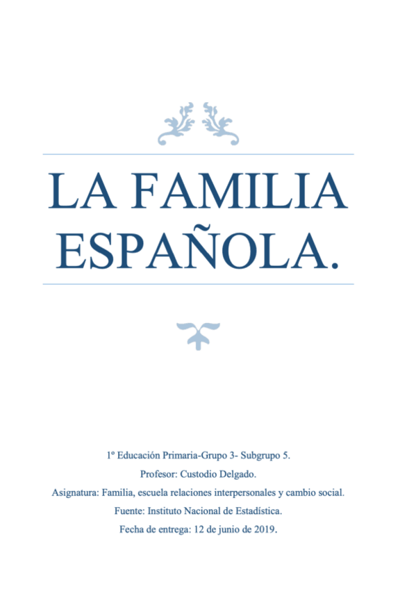 He publicado nuevos trabajos de 1º Familia, Escuela, Relaciones Interpersonales y Cambio Social: La-familia-espanola.pdf