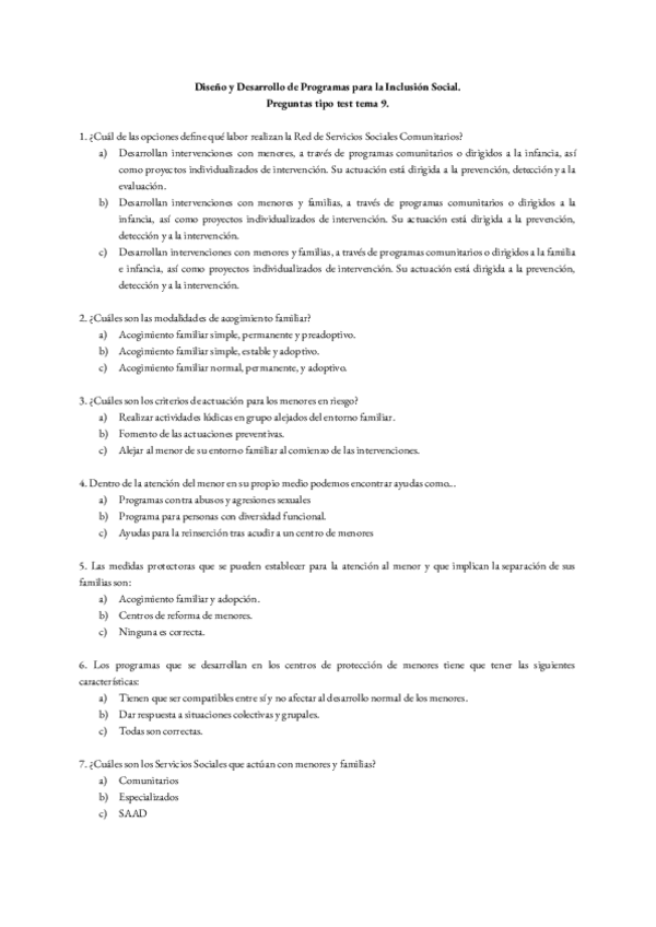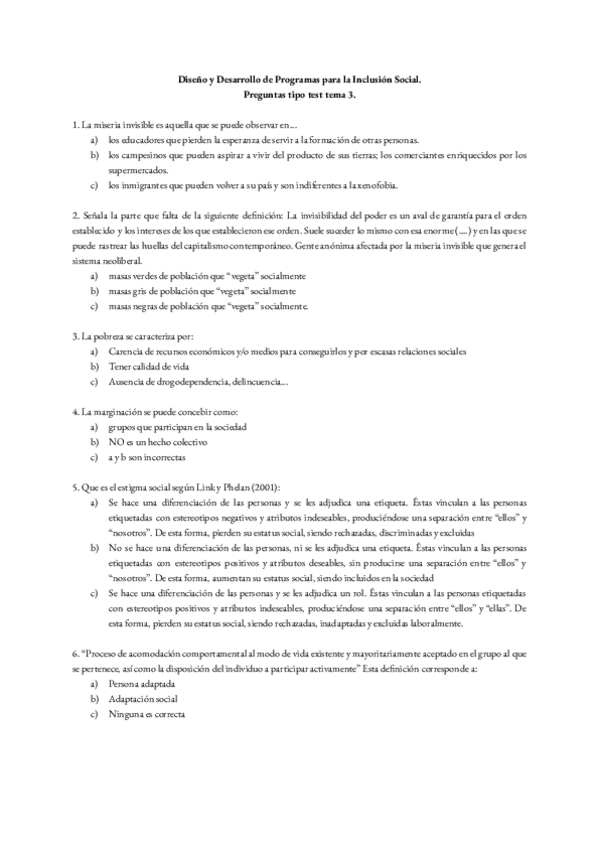 He publicado nuevos examenes de 3º Diseño y Desarrollo de Programas para la Inclusión Social: TIPO TEST POR TEMAS (CON Y SIN RESPUESTAS)