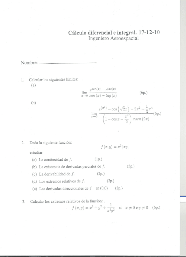 Cálculo Exámenes
