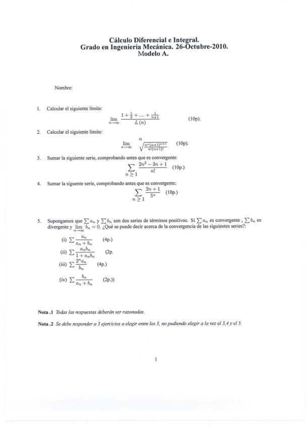 He publicado nuevos examenes de 1º Cálculo Diferencial e Integral: Cálculo Exámenes