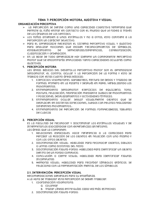 He publicado nuevos apuntes de 2º La construcción de la psicomotricidad en la infancia: T7-PERCEPCION-MOTORA-AUDITIVA-Y-VISUAL.pdf