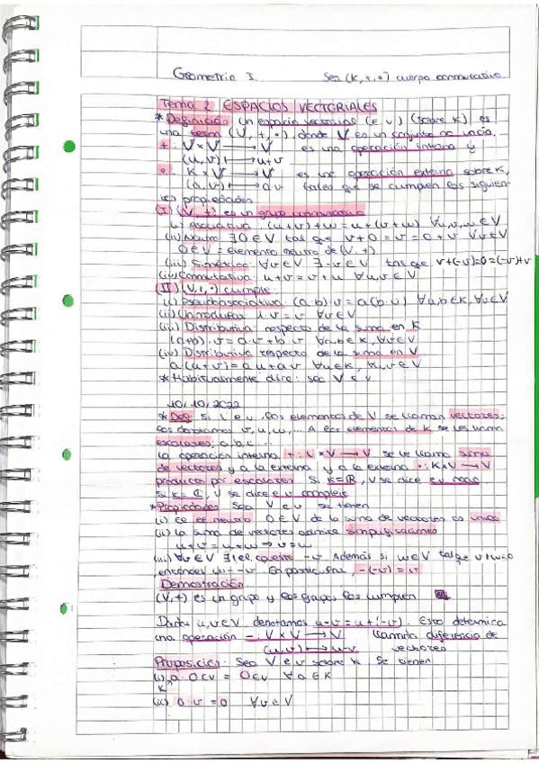 Apuntes de la pizarra tomados en clase: definiciones, proposiciones, teoremas, demostraciones..