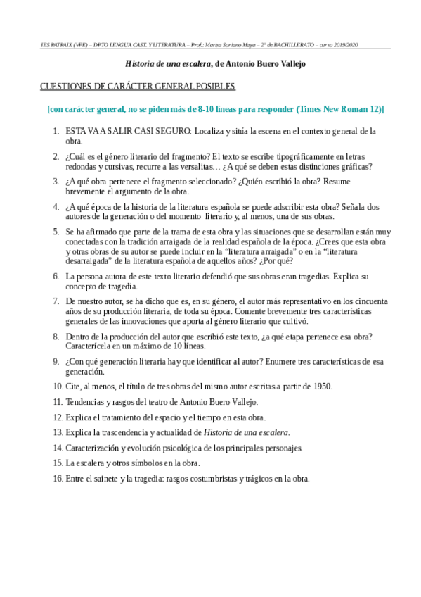 Historia de una escalera - Buero Vallejo