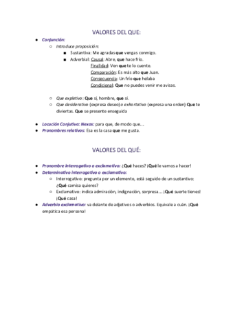 He publicado nuevos apuntes de Lengua Castellana y Literatura II: VALORES DEL QUE_
