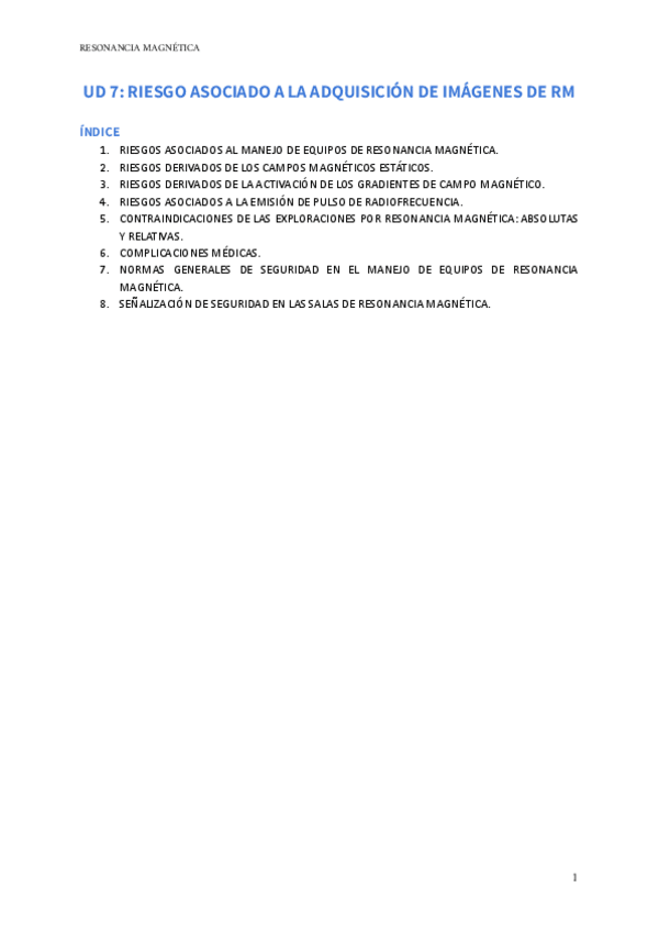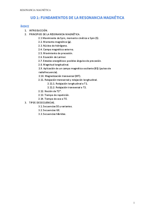 He publicado nuevos apuntes de Técnicas de Imagen por Resonancia Magnética: RESÚMENES