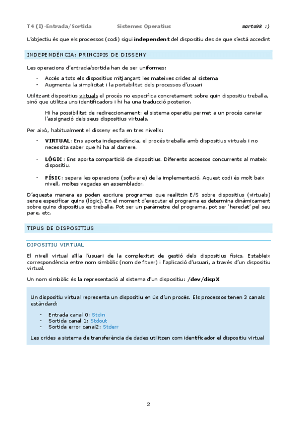 He publicado nuevos apuntes de 2º Sistemas Operativos: Tema4Part1EntradaSortidaAPUNTS.pdf