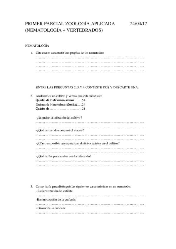 He publicado nuevos examenes de 4º Zoología Aplicada: 1PARCIAL ZOOAPL.pdf