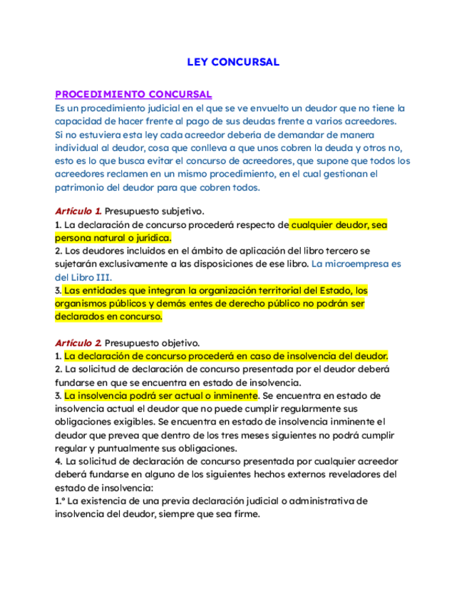 He publicado nuevos apuntes de 2º Derecho Mercantil I: LEY-CONCURSAL-apuntes.pdf