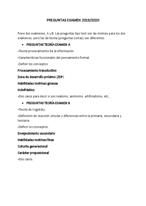 He publicado nuevos examenes de 2º Psicología del Desarrollo Físico, Cognitivo y Lingüístico: Preguntas-examen.pdf