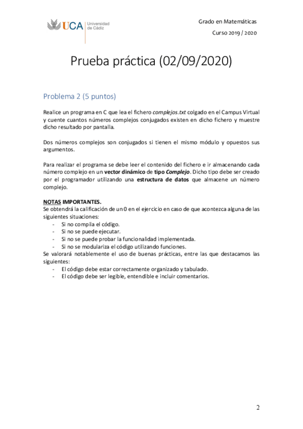 He publicado nuevos examenes de 1º Informática II: Examen Sept 2020