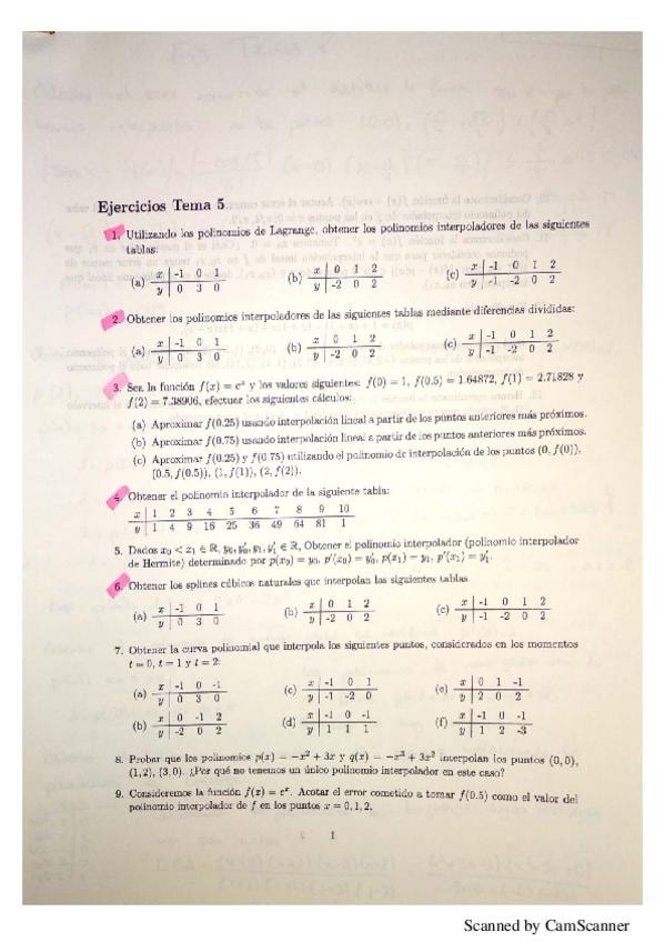 Ejercicios interpolación