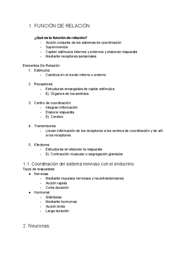 Apuntes sobre el sistema nervioso y hormonal 3 ESO.