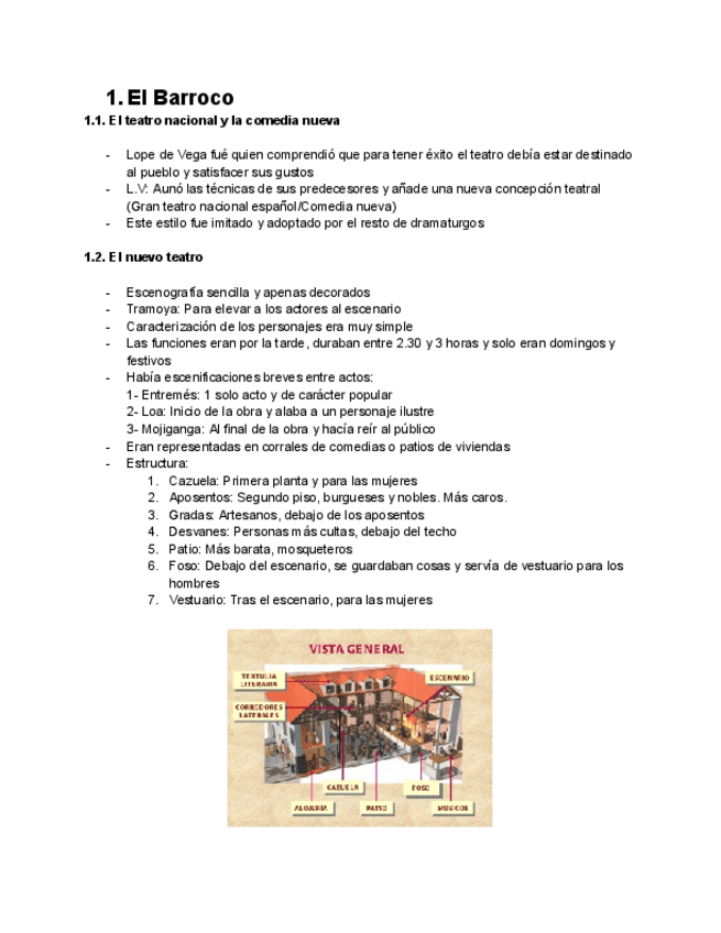 Apuntes sobre el barroco literario español incluyendo a Lope de Vega, Calderón, Quevedo, Góngora...