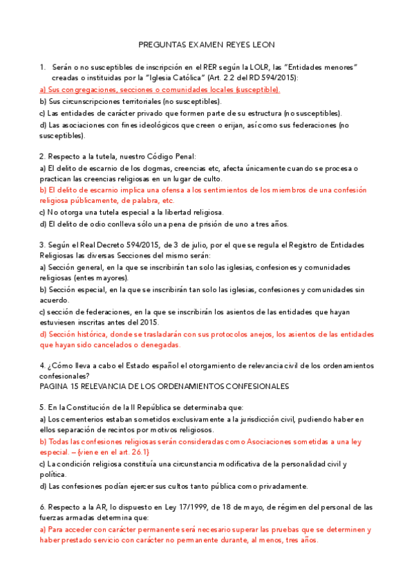 He publicado nuevos apuntes de 4º Derecho y Factor Religioso: examen y preguntas reyes leon