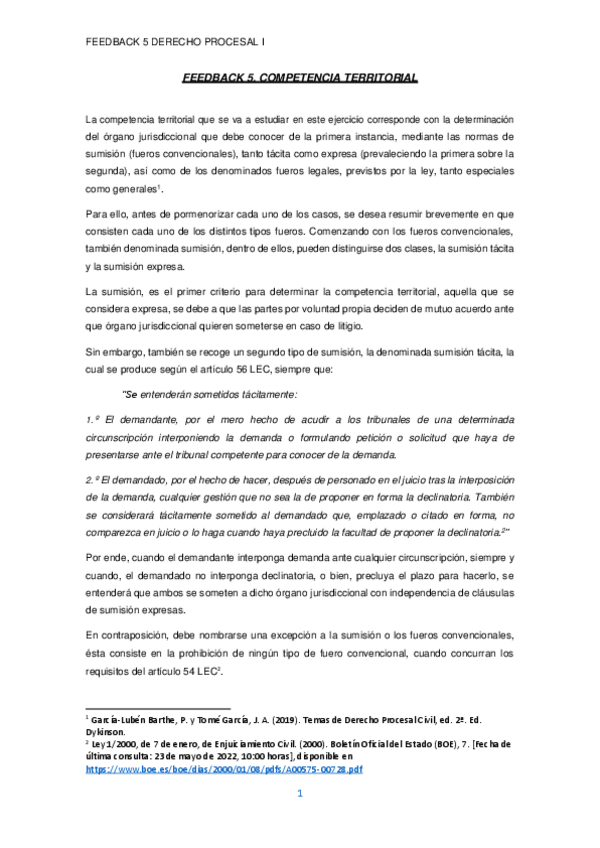 FEEDBACKS DERECHO PROCESAL I