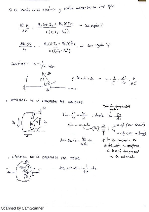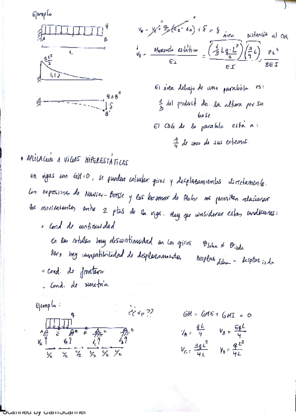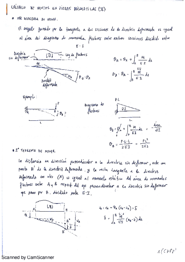 Apuntes completos sobre la aplicación de los teoremas de Mohr con anotaciones aclaratorias. Obtención de la ecuación de la deformada a partir de la ecuación de la elástica. Muy recomendable