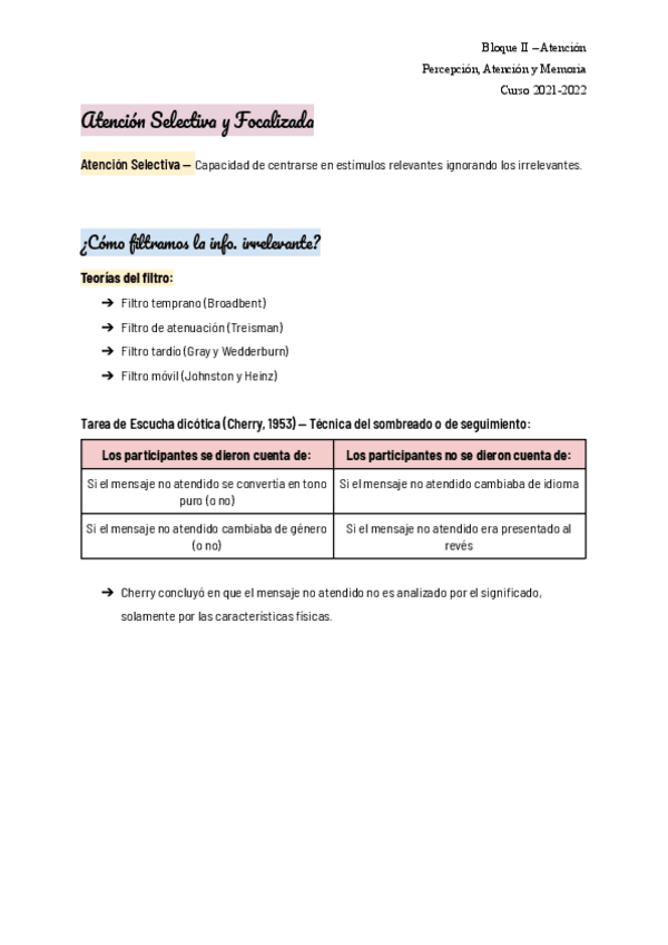He publicado nuevos apuntes de 1º Percepción, Atención y Memoria: Bloque de Atención