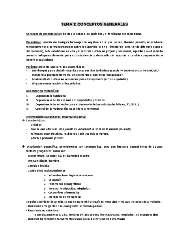 TODO EL TEMARIO DE PARASITOLOGÍA RESUMIDO EN UN DOCUMENTO