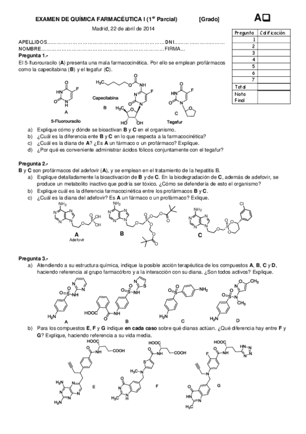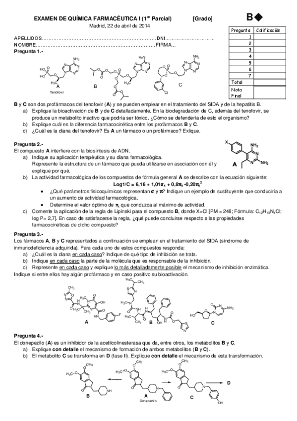 He publicado nuevos examenes de 3º Química Farmacéutica I: EXAMEN DE QF1-A-Parcial1-2013-14.pdf