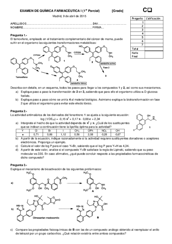 He publicado nuevos examenes de 3º Química Farmacéutica I: QF1-P1-ExD-2014-15.pdf