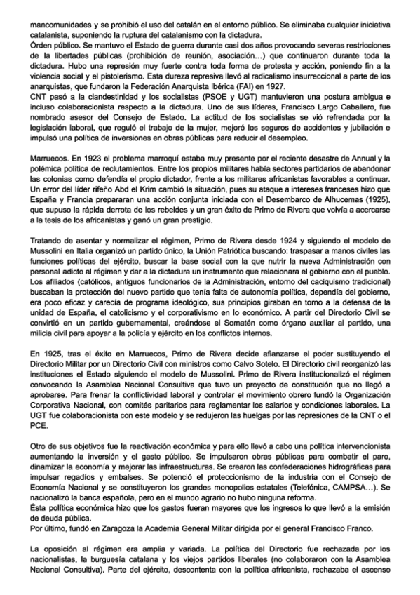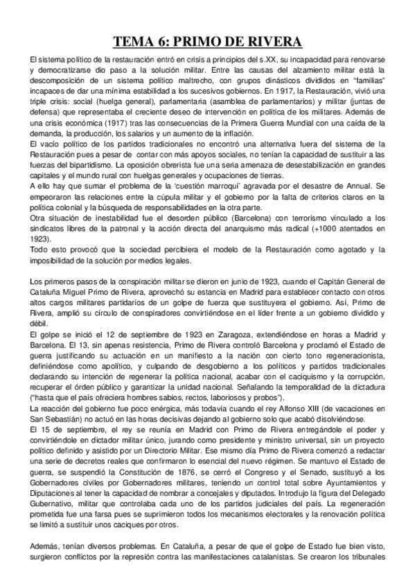 Resumen del tema Primo de Rivera con todos los puntos esenciales para EVAU