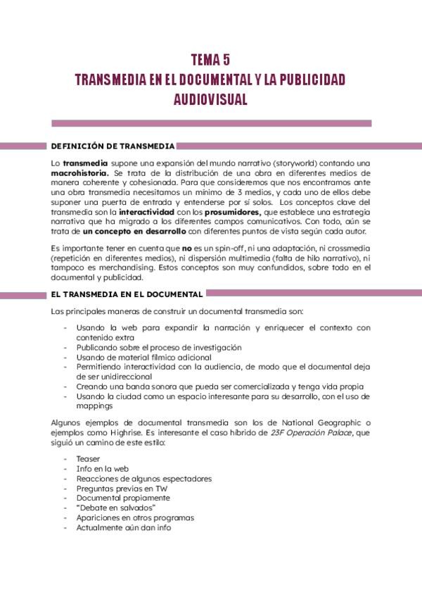 He publicado nuevos apuntes de 4º Teoría y Técnica del Documental y la Publicidad Audiovisual: TEMA-5-TRANSMEDIA.pdf
