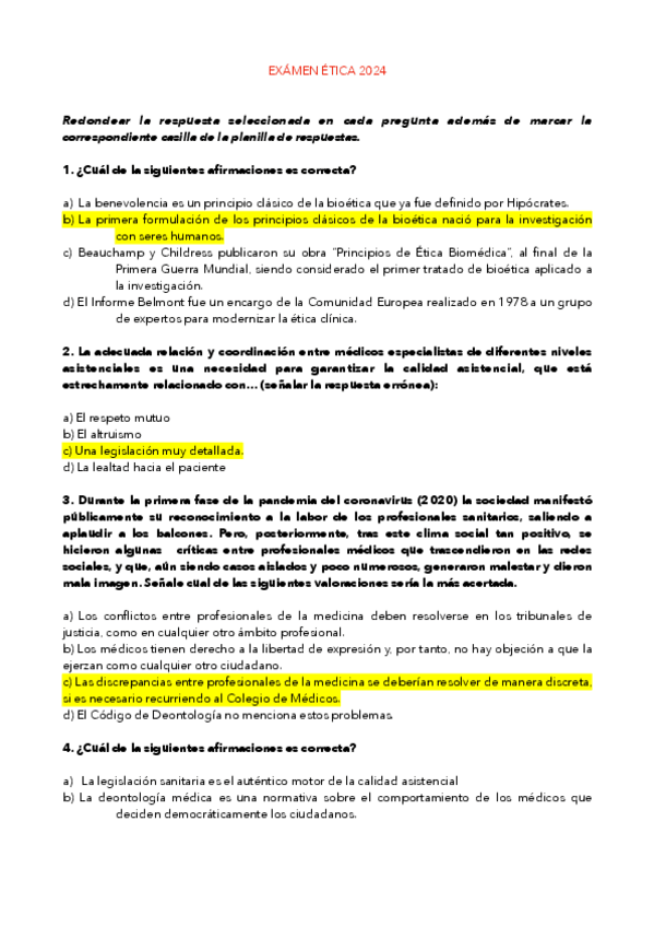 He publicado nuevos examenes de 3º COMUNICACION ASISTENCIAL, ETICA MEDICA Y LEGISLACION I: EXAMEN-ETICA-2024.pdf