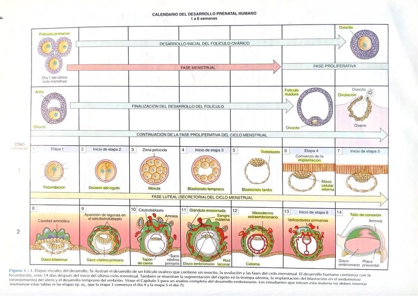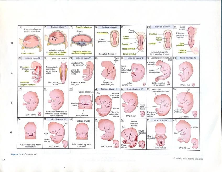 Tabla resumen de semanas de gestación - repaso visual