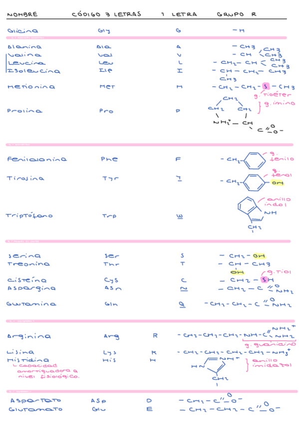 Tabla aminoácidos