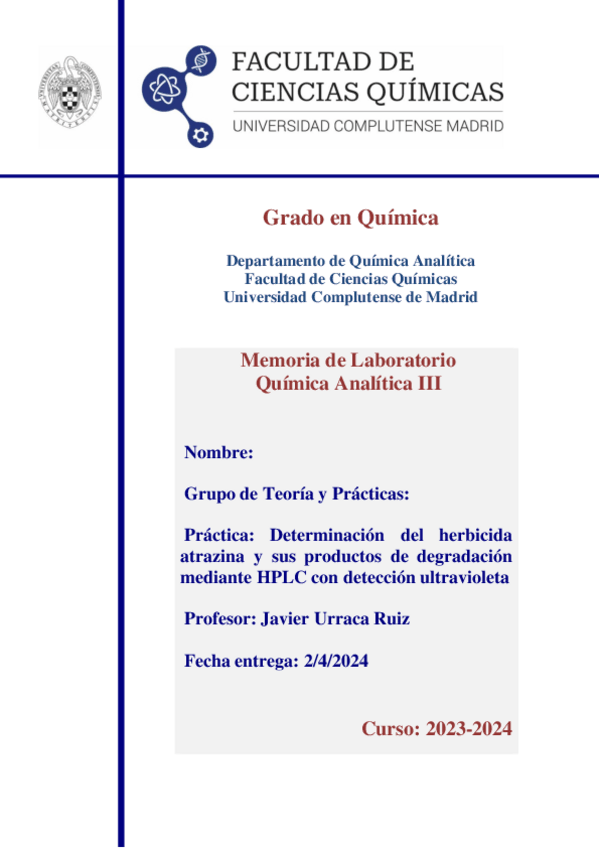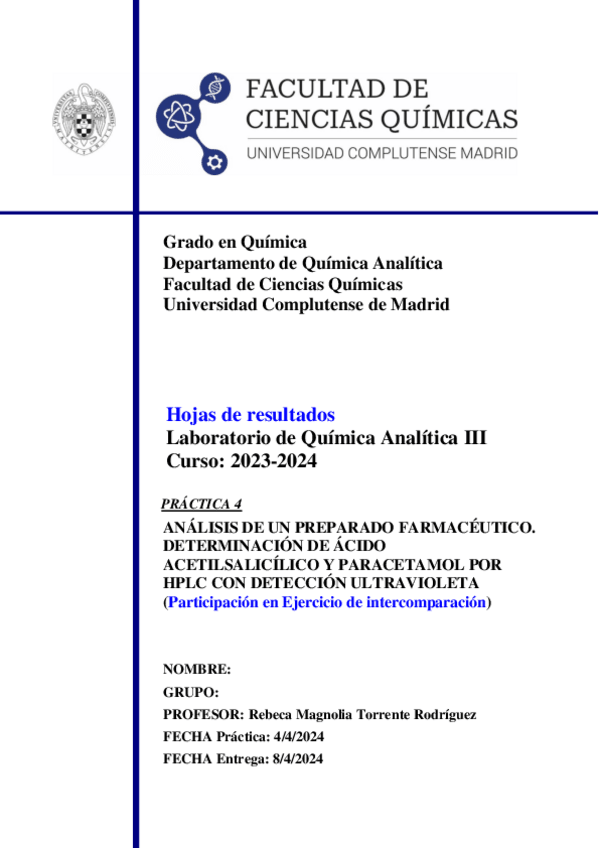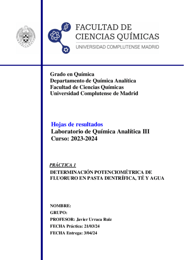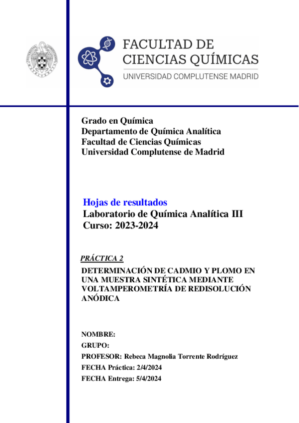 He publicado nuevos apuntes de 3º Química Analítica III: Informes, cuestiones y formulario